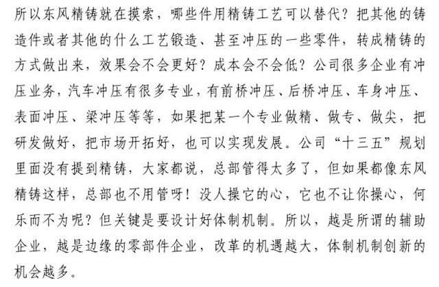 二、東風(fēng)精鑄深化改革工作安排