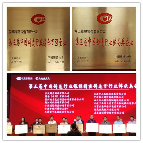 【公司榮譽】東風精鑄連續三屆榮獲鑄造行業綜合百強企業